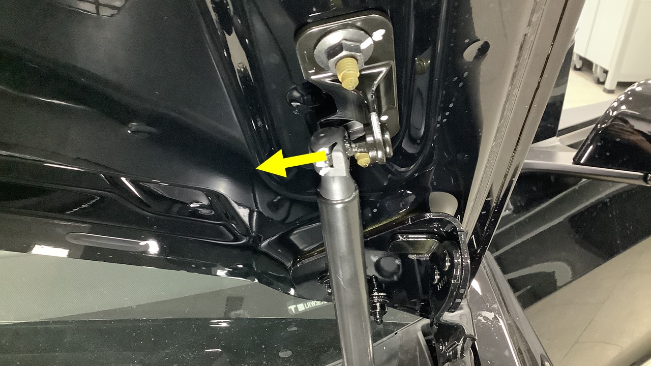 attaches the hood gas strut to the body mount, and then remove the hood gas
