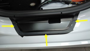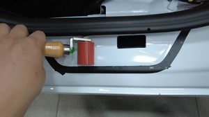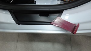 - Using the masking tape as a guide, carefully place the new sill plate into place and press down on it to adhere it to the vehicle.