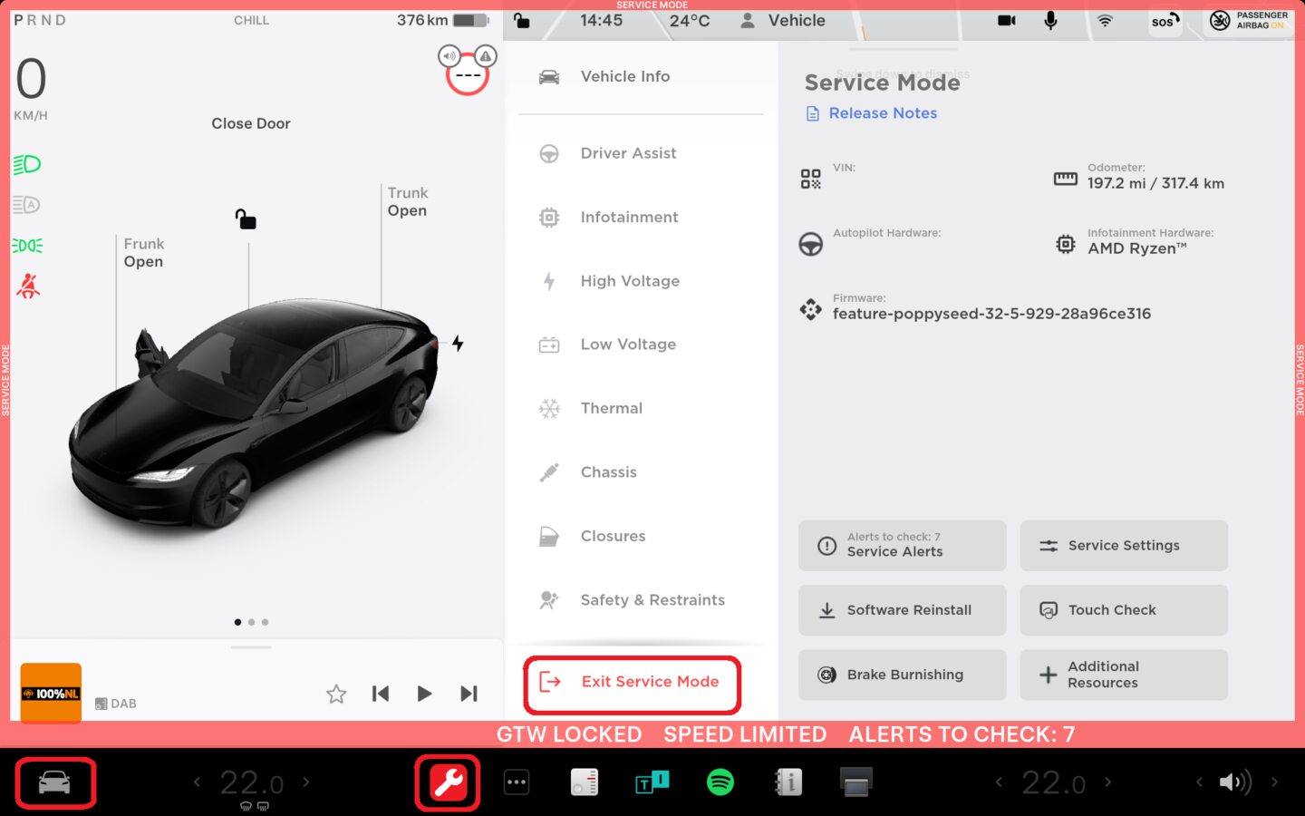 - Make sure there are no low tire pressure alerts on the touchscreen. If present, adjust tire pressures to specification.