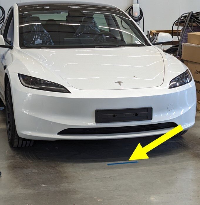 - Park the vehicle perpendicular to the wall so that the front fascia is aligned with the tape that was put on the floor in the previous step.