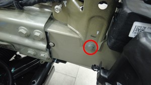 Install the bolt that attaches the LH front fender support to the LH front