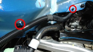 - Use a bungee strap to pull back the RH front wheel liner and secure it to the subframe.