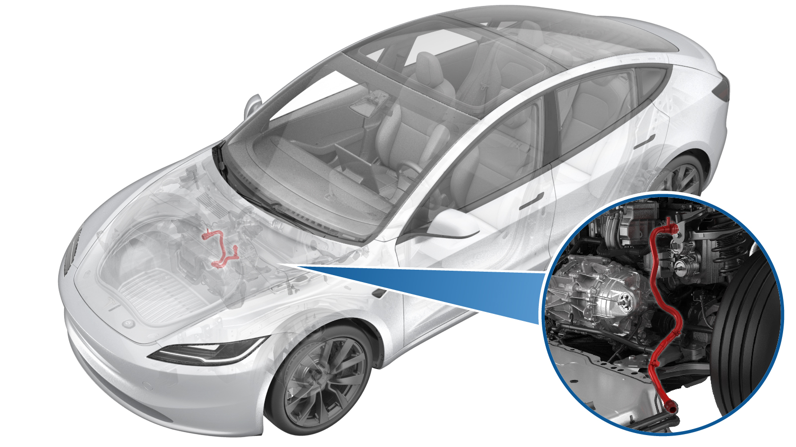 Release the spring clip and the plugs (x2) to disconnect the powertrain supply hose