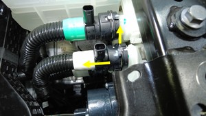 - Install the powertrain supply hose to the vehicle and place a coolant plug on the lower end of the hose to avoid coolant loss.