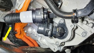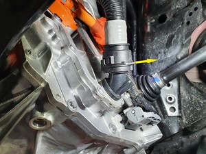 rear drive unit inverter inlet hose to the rear drive unit HV harness.