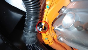 drive unit inverter inlet hose from the HV battery, and then immediately plug both