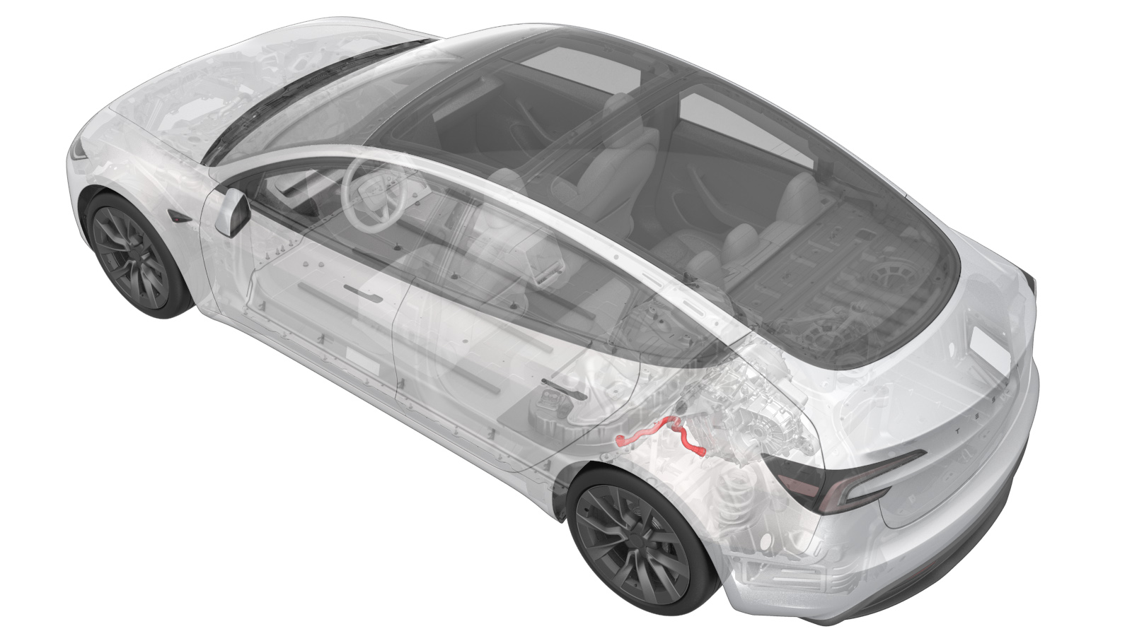 drive unit inverter inlet hose to rear drive unit HV harness.