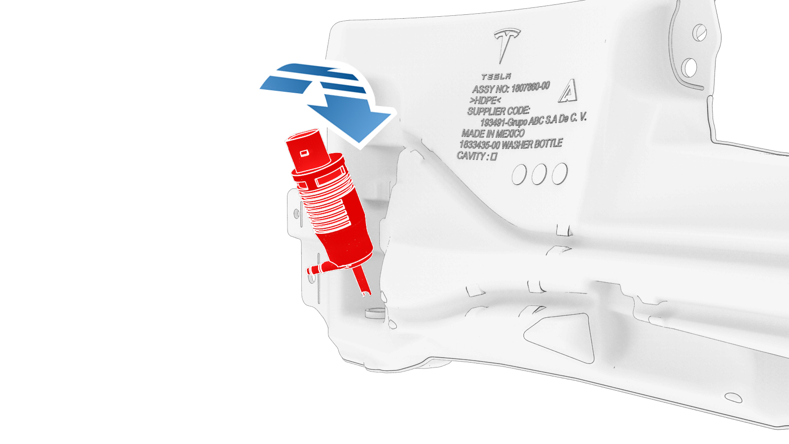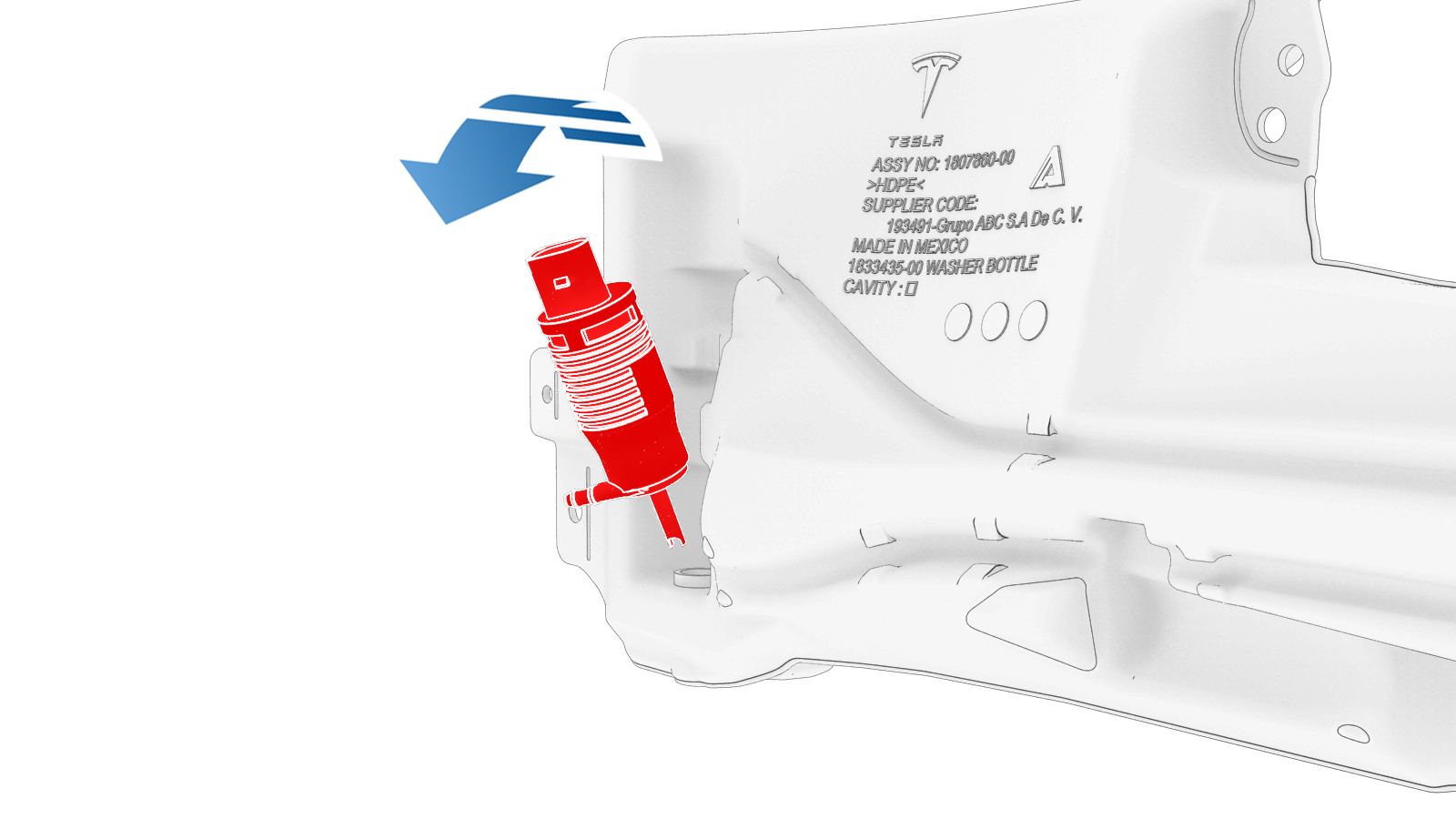 washer pump to the washer reservoir.