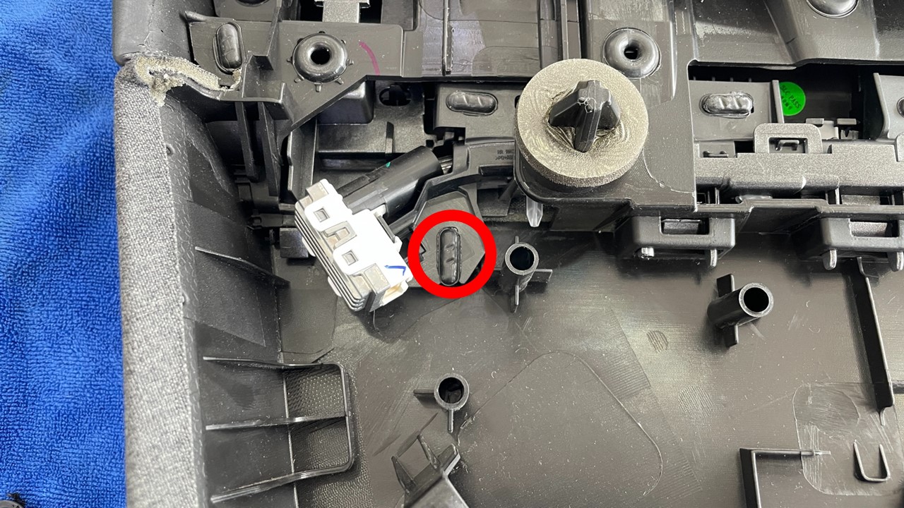 CAUTIONDo not polish the tab near the ambient light.CAUTIONBe careful not to damage the door panel.NoteFor round heat staked tabs, polish in the middle to facilitate removal. For square heat staked tabs, completely polish for removal.TIpUse of the following tool(s) is recommended: