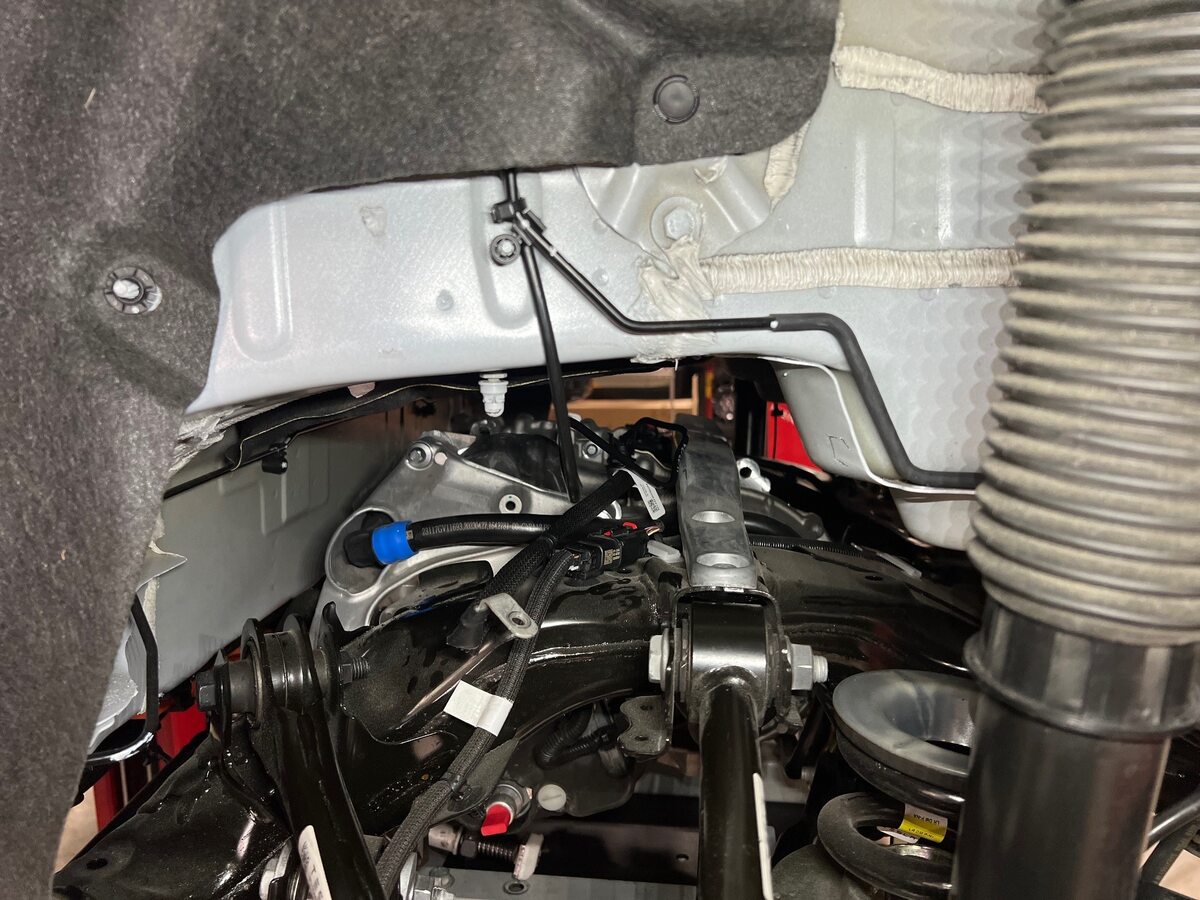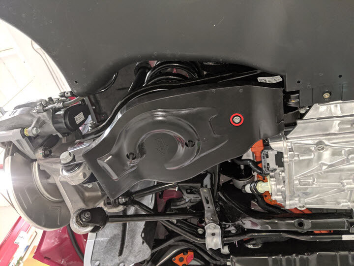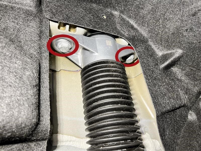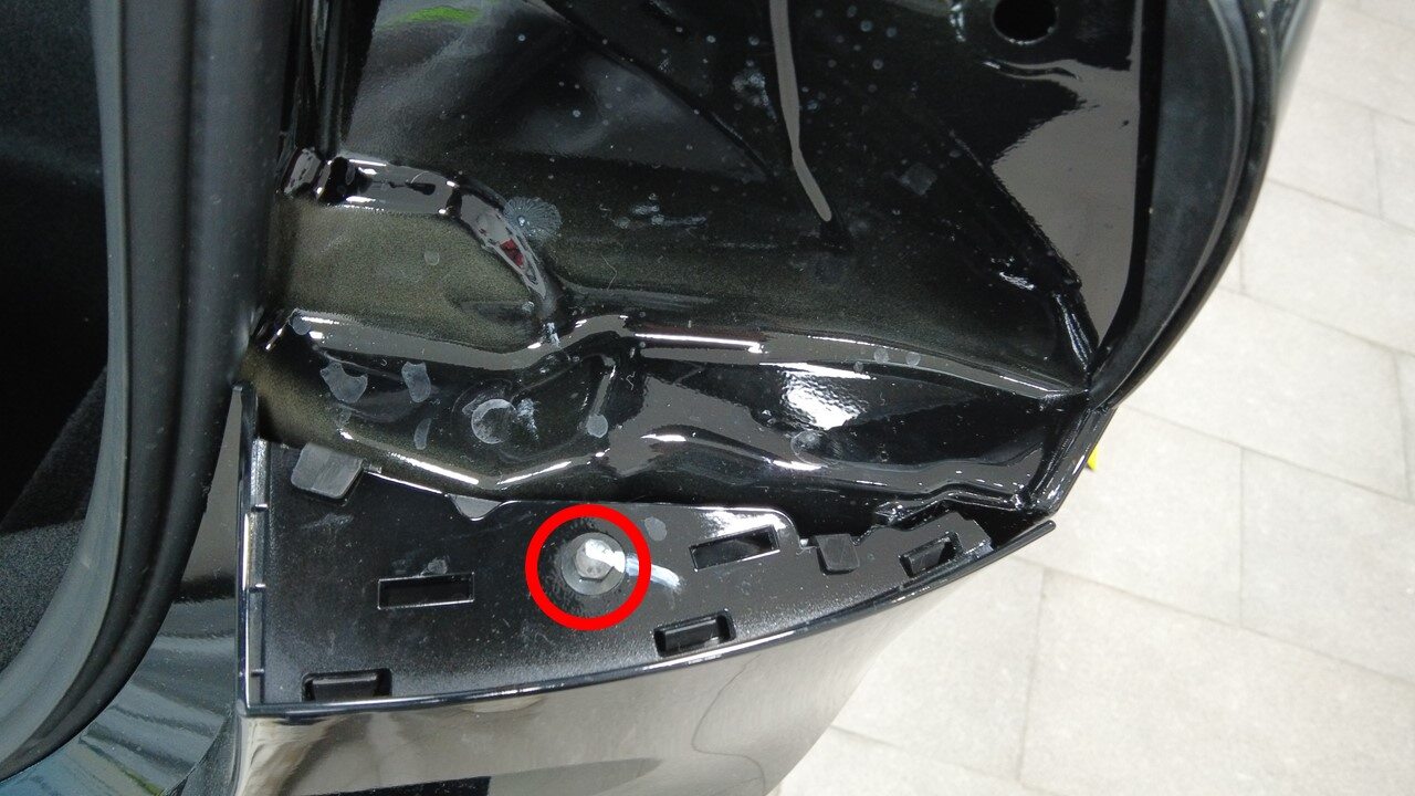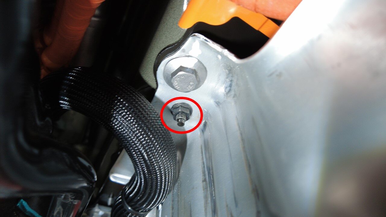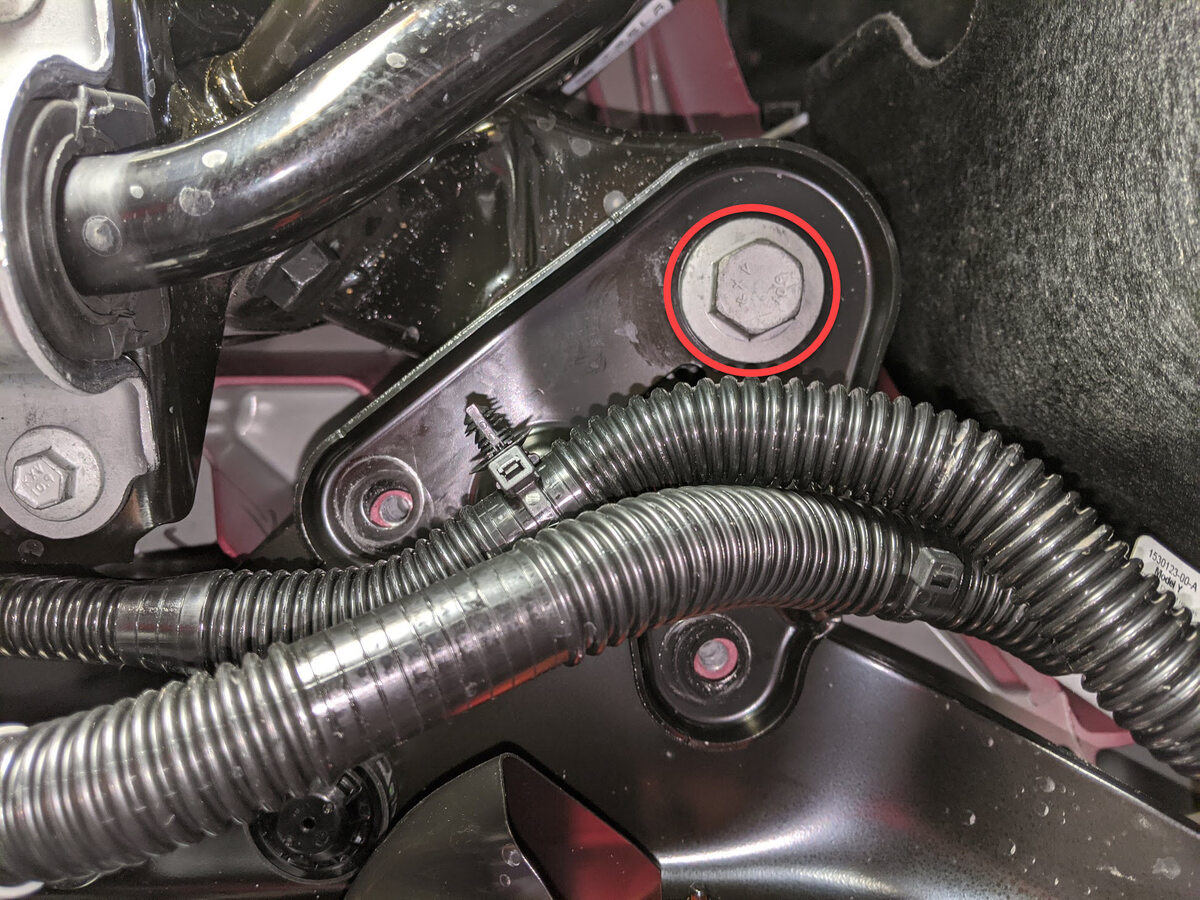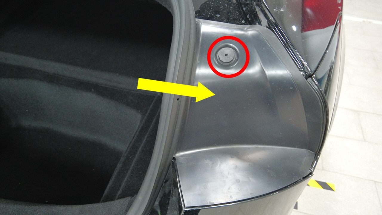 Note1x bolt, 10mm, 10 Nm, Re-install 1x washer if vehicle had this washer during removal, Located at LH rear wheel well area