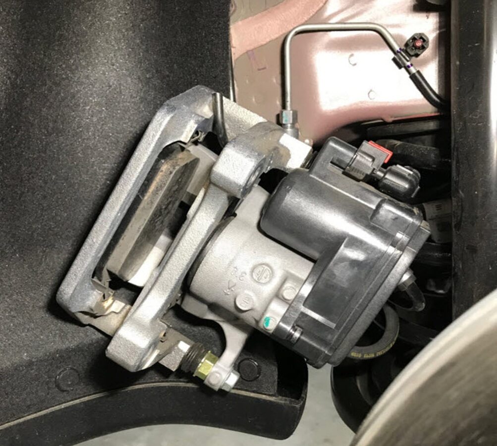 - Support the vehicle on a 2-post lift and remove both rear wheels. See Wheel Assembly (Remove and Install).