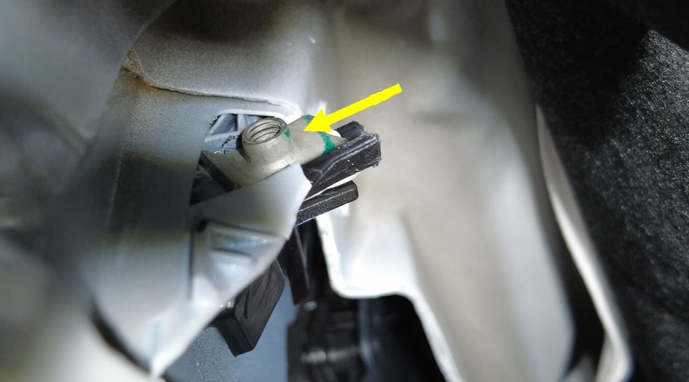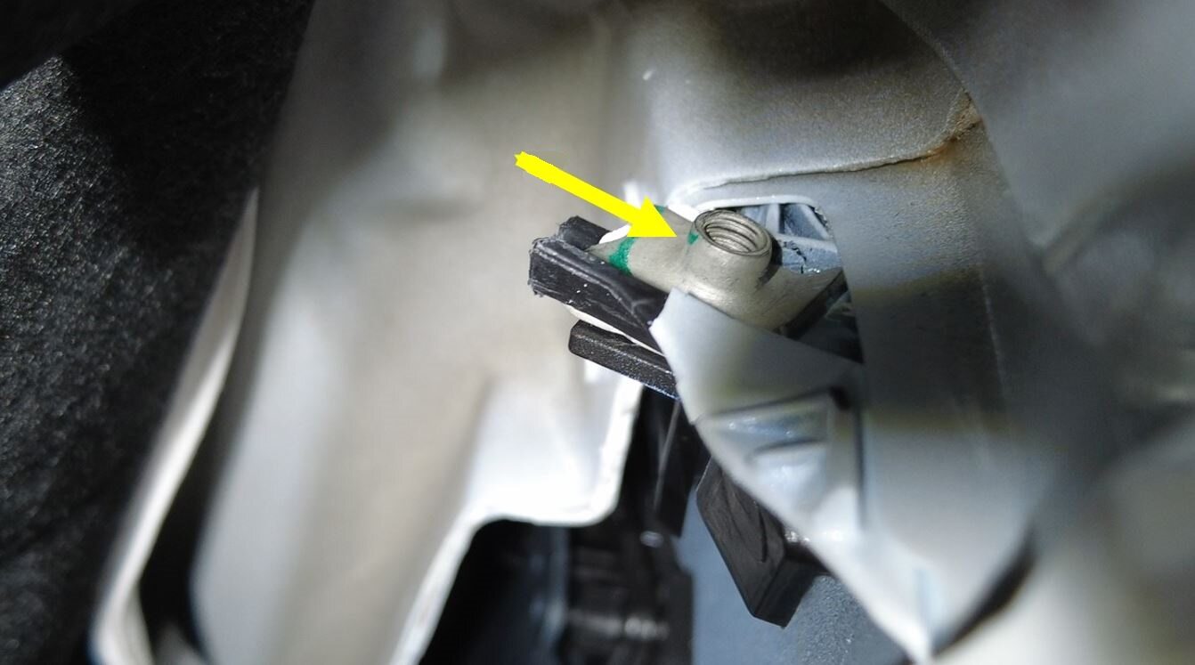 Note1x nut, 10mm, 10 Nm, Located at LH rear wheel well area