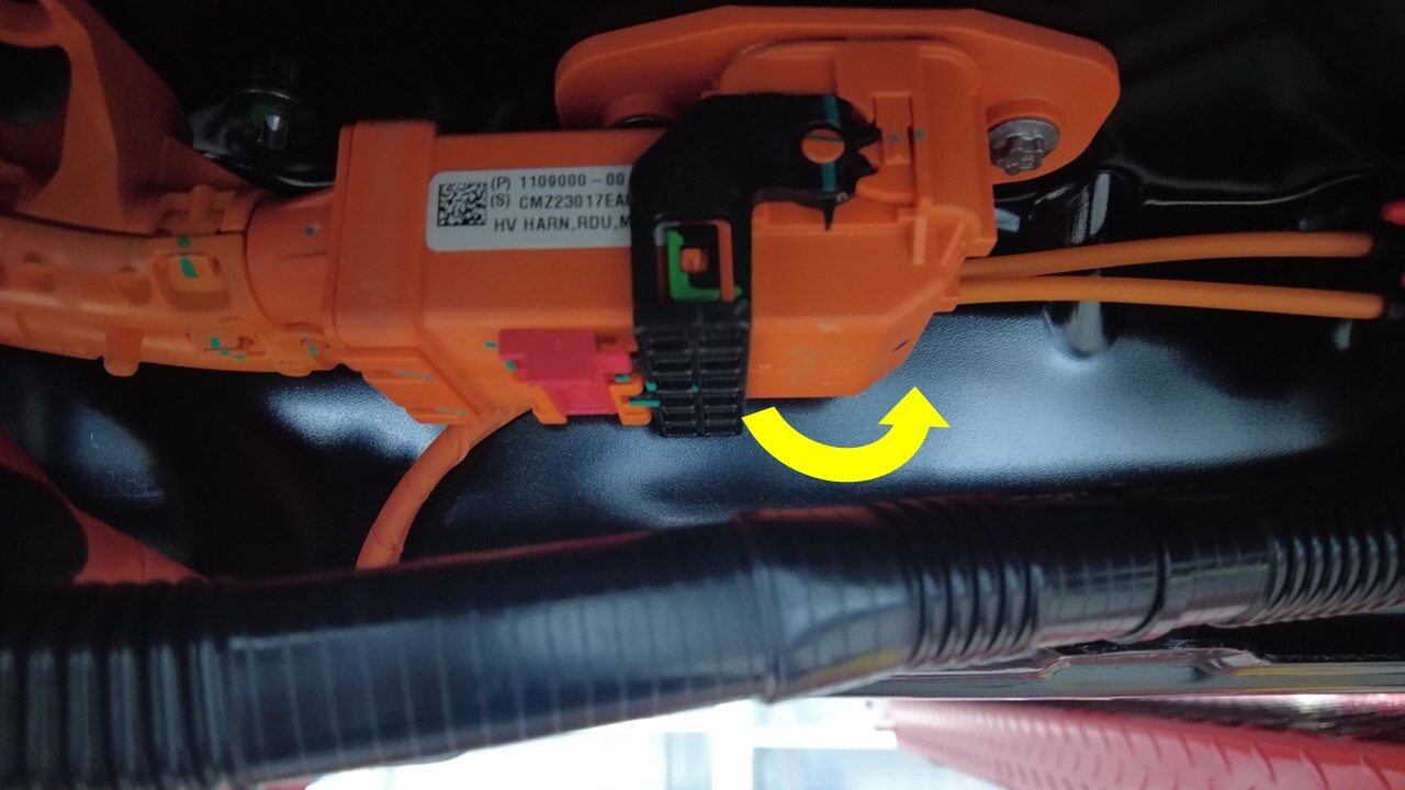 - Disconnect LV power and perform Vehicle HV Disablement. See GUID-3C5B5D4F-24A7-4EAE-B382-C93A2DEC1BFA.html.