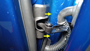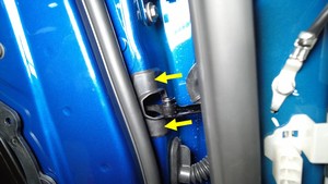 Fasten the clips (x3) that attach the LH front door check strap to the LH