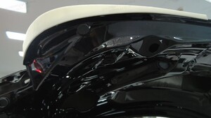 - Use IPA wipes to clean all adhesive residue and debris from the lower left trunk lid surface.