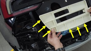 - Move the badge removal tool in a sawing motion to separate the Chinese Tesla badge from the trunk lid.