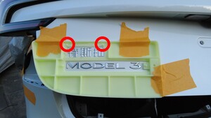 Chinese Tesla badge, then place the badge into the jig. Align the holes of the