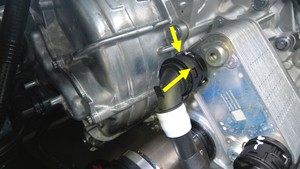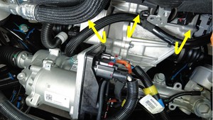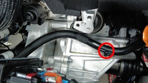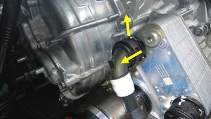Release the inverter to oil cooler hose clip, and then remove the inverter to oil