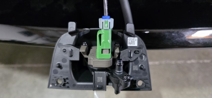Connect the front fascia camera washer hose.