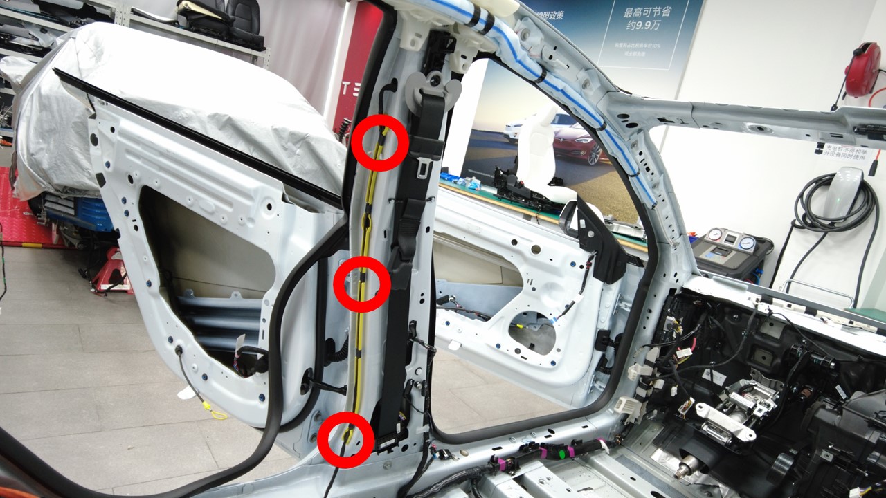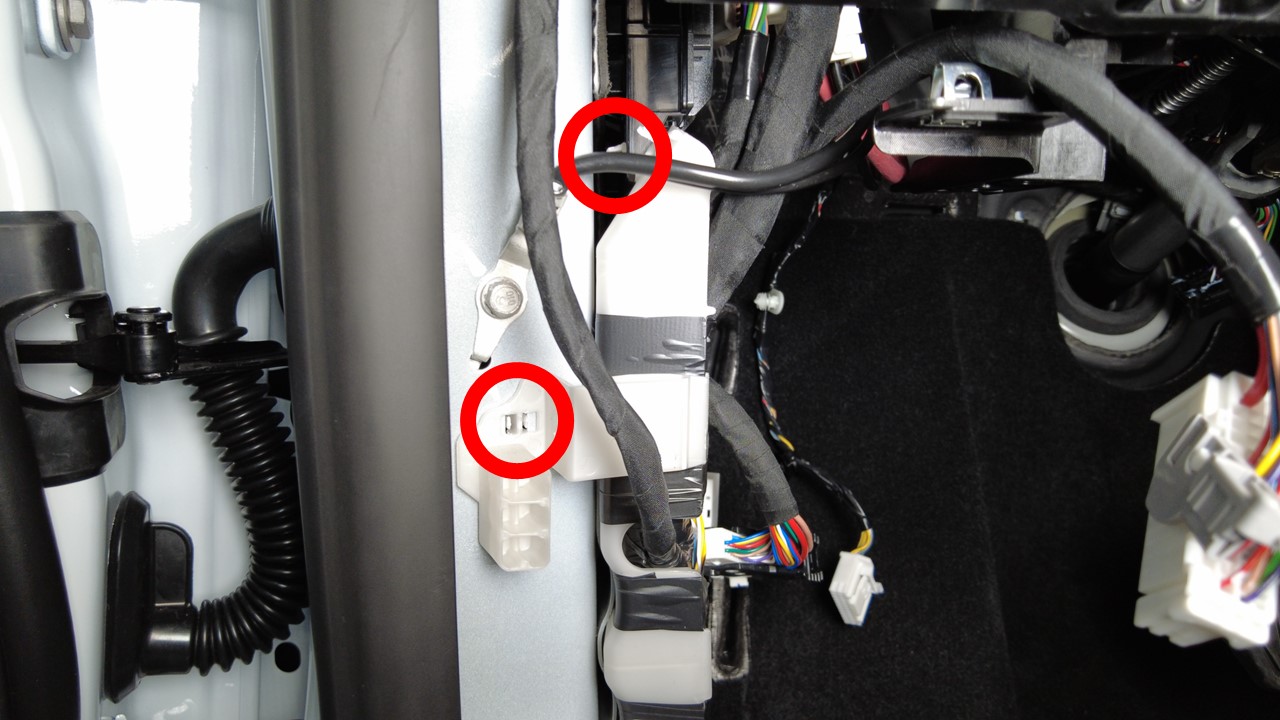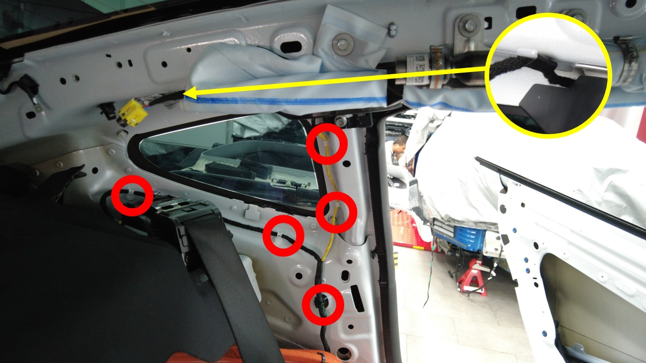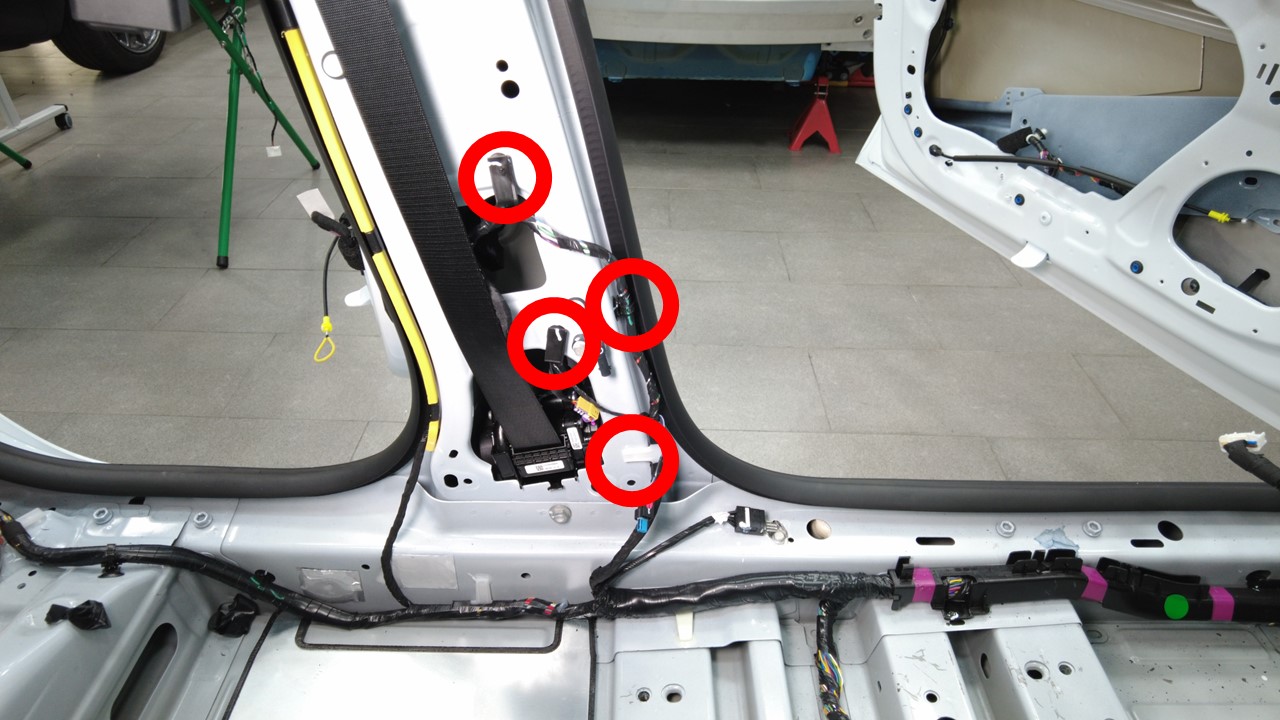 Remove LH camera wire harness from B-pillar area and secure it to body