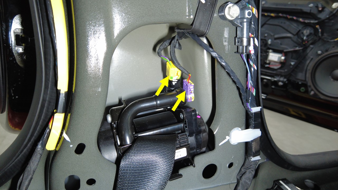 Connect the electrical harness to the connectors in the RH lower B-pillar
