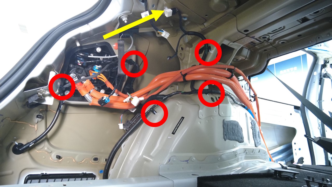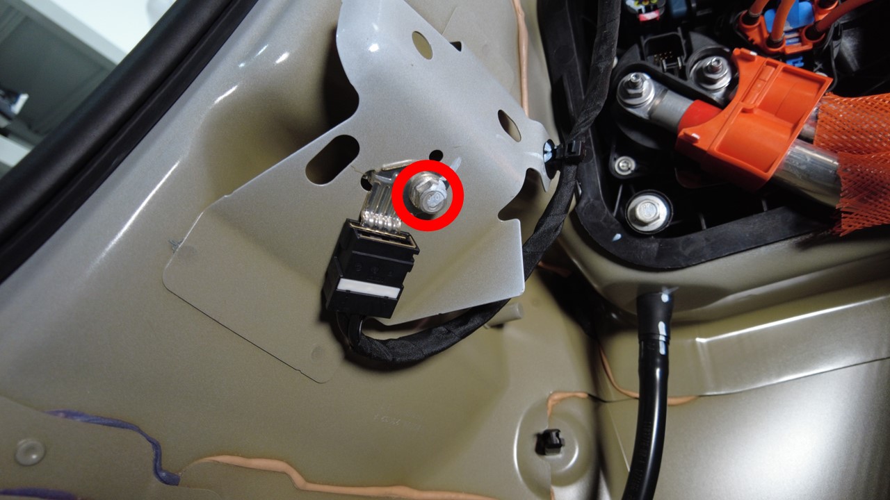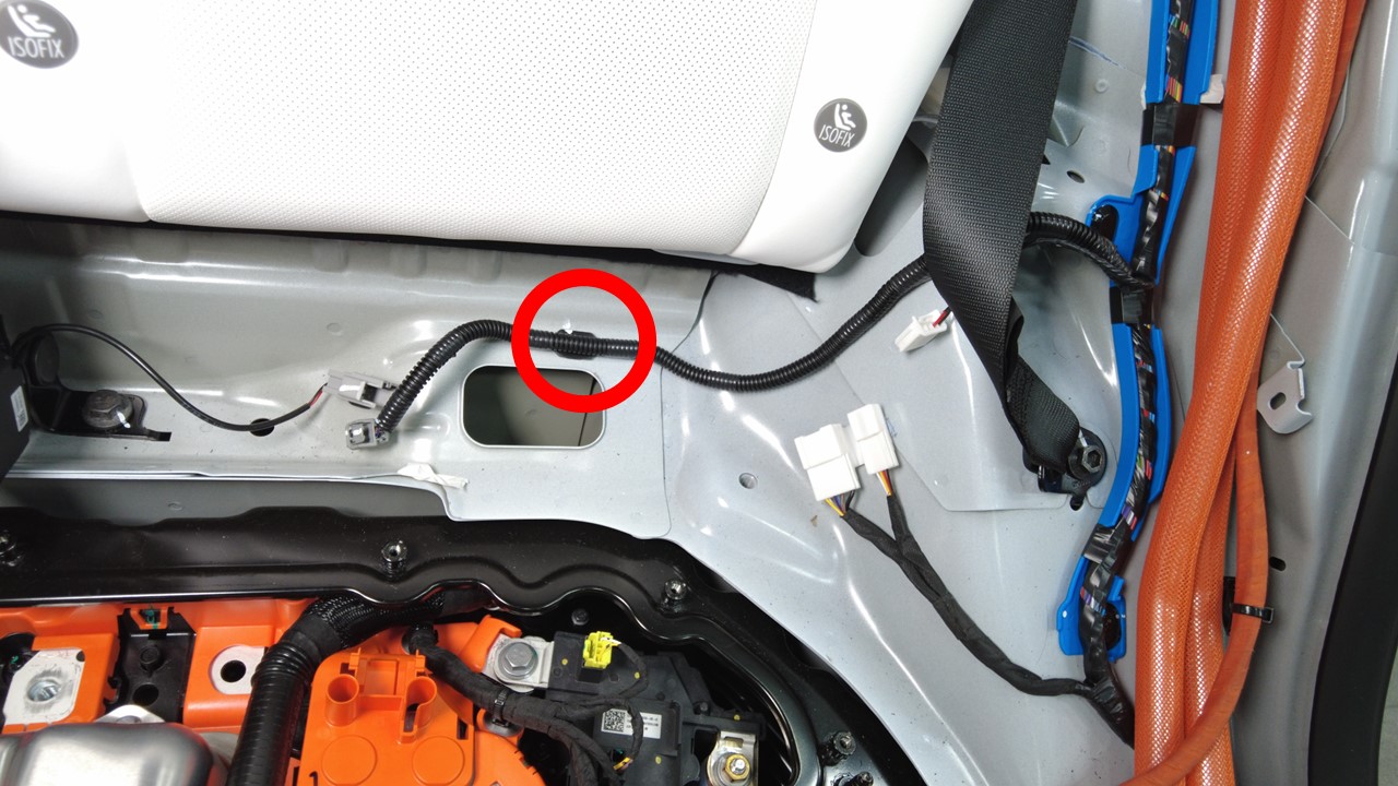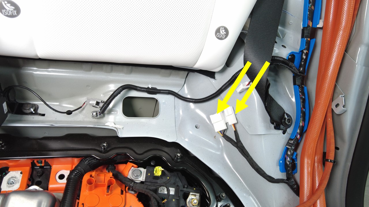 Connect the electrical harness to the rear Bluetooth passive entry antenna
