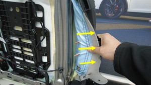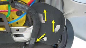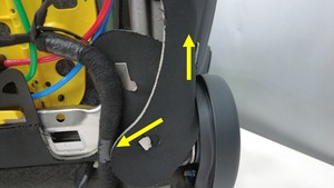 NotePull the trim straight up off of the upper retaining tab to release it, then pull the lower section of trim off of the retaining tab.