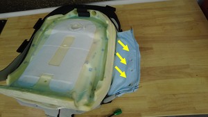 still inside through the seatback foam, and then carefully remove the airbag from the