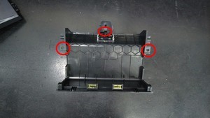 NotePull the console closeout straight up to remove it from the datums (x3).