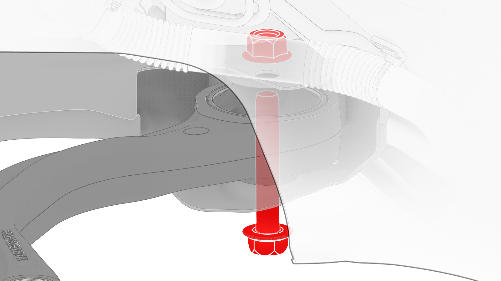 Bolt and nut that attach the LH and RH front lower compliance links to the front subframe |