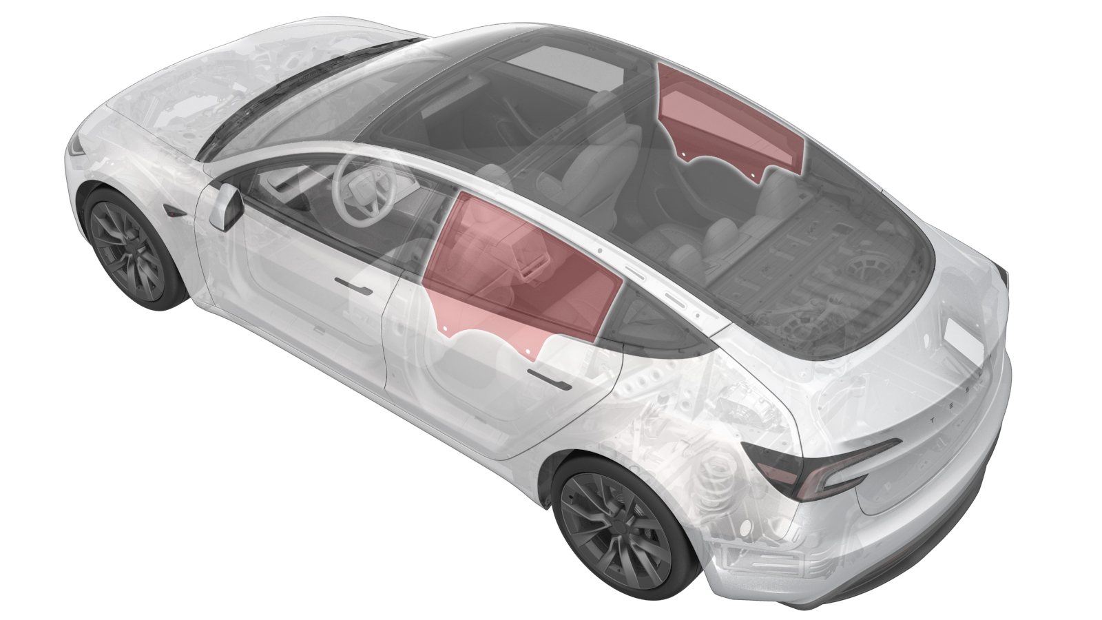 - Check the LH rear window glass fitment with a gap and flush tool.