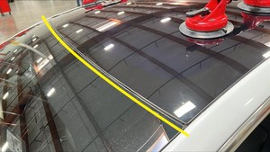 Using the gap measurements that were recorded during removal of the fixed roof glass, press the new fixed roof glass onto the body.