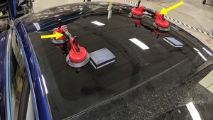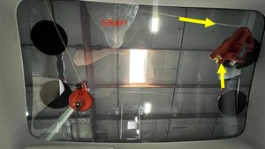 Attach suction cups (x2) to each corner of the new fixed roof glass.