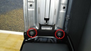 Bolts (x2) that attach the center armrest bracket to the seat frame |