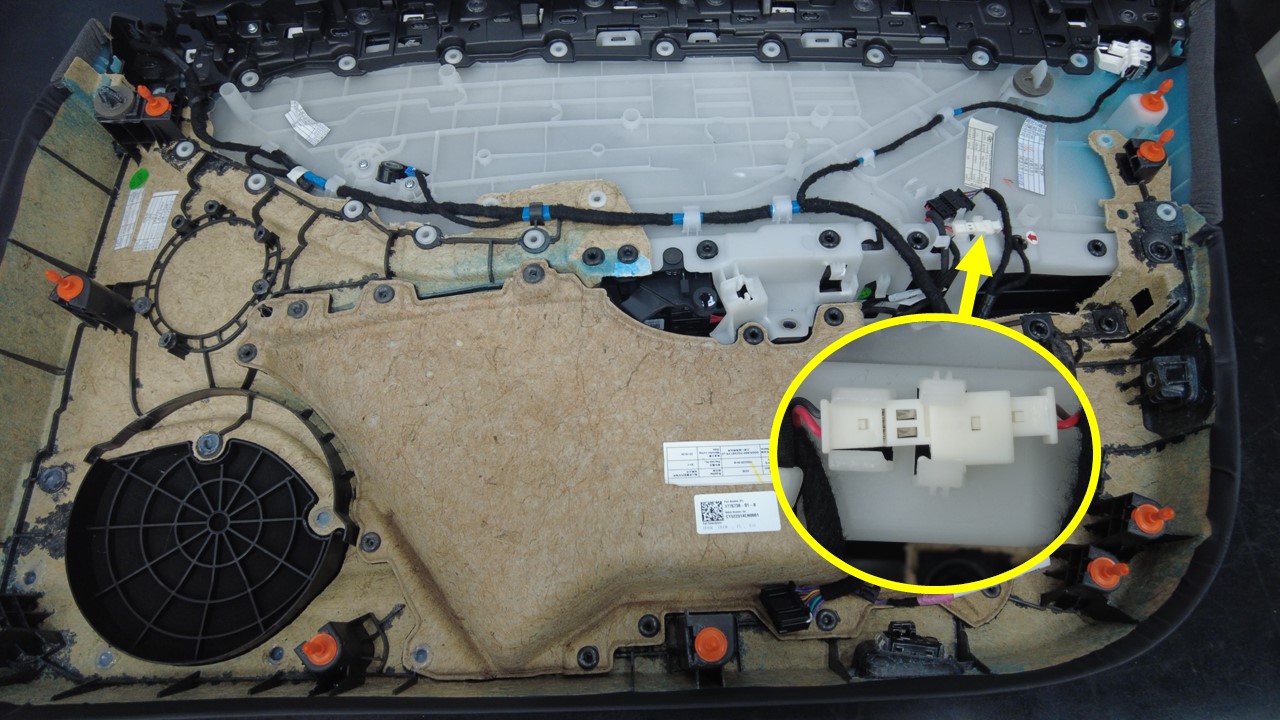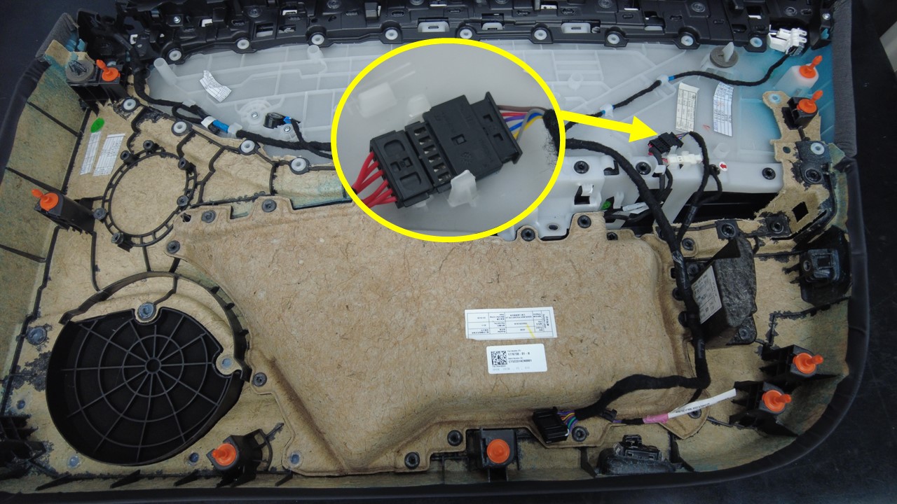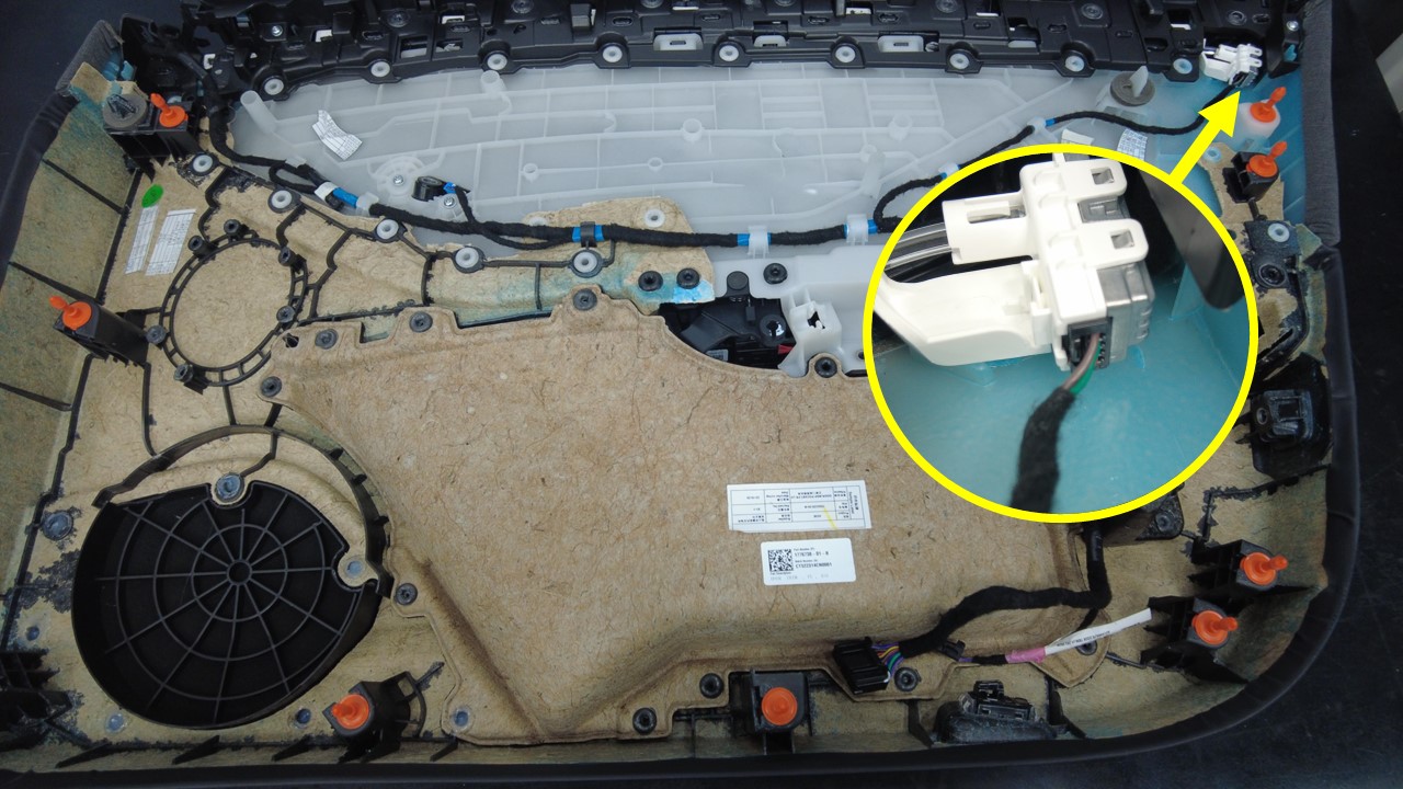 NoteThe door harness from the old door trim transferred into the new trim if it is in good condition.