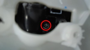 Bolt that attaches the interior door release switch to the LH rear door trim panel |