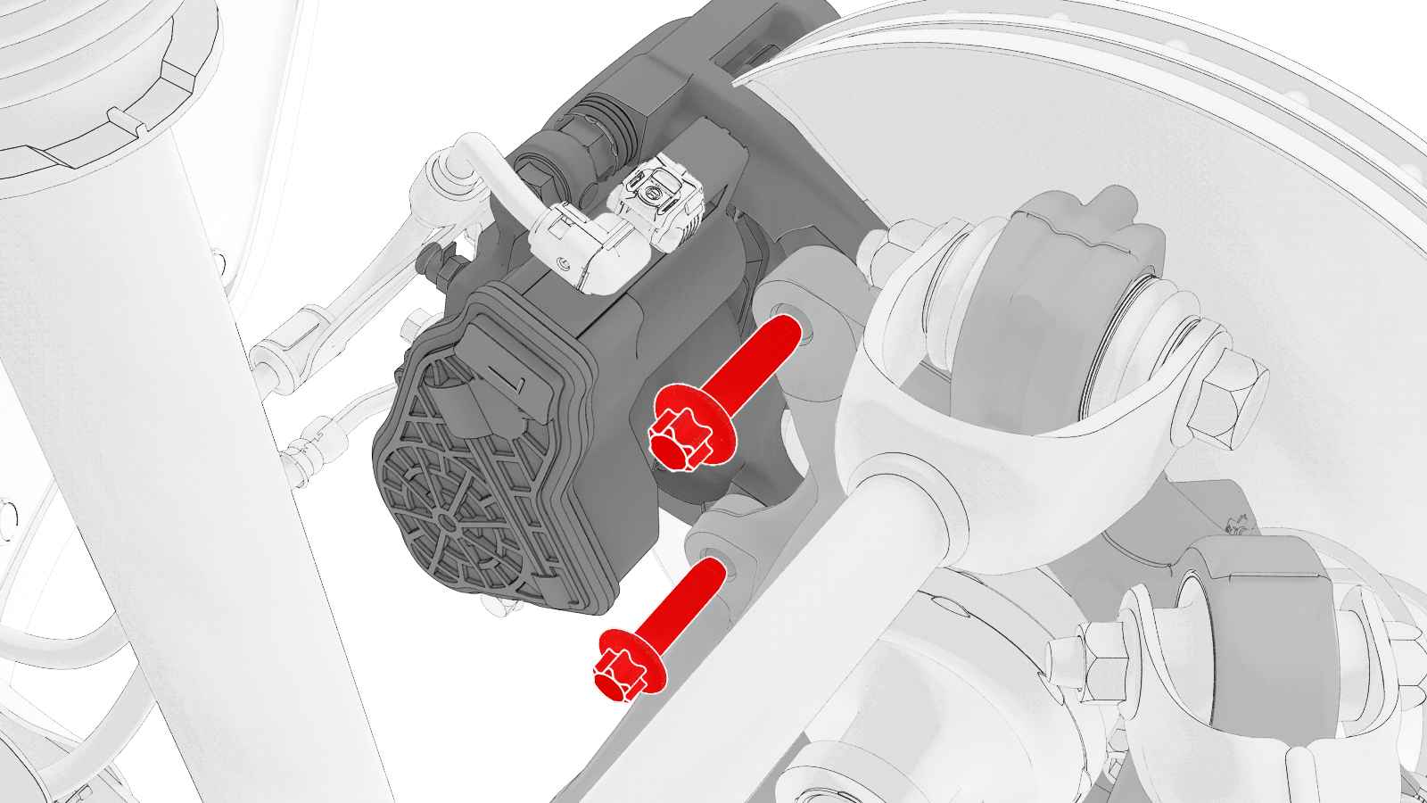 (x2) that attach the LH rear caliper to the LH rear knuckle, remove the