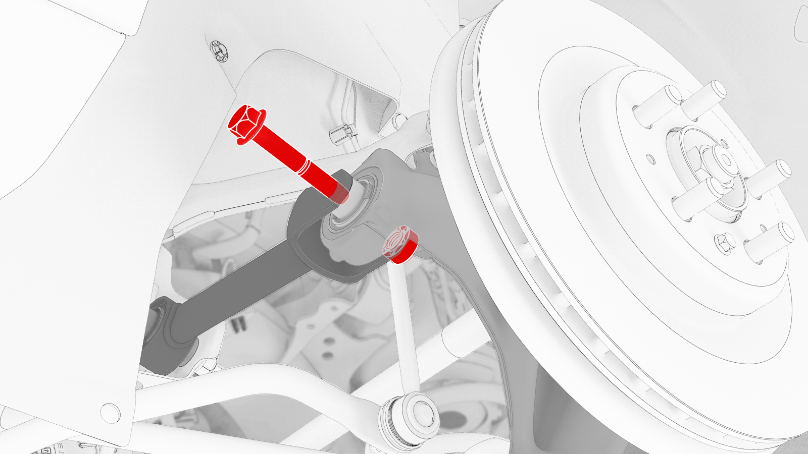 attach the LH rear upper fore link to the knuckle.