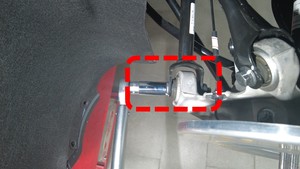 nut that attaches the LH stabilizer bar drop link to the LH rear suspension