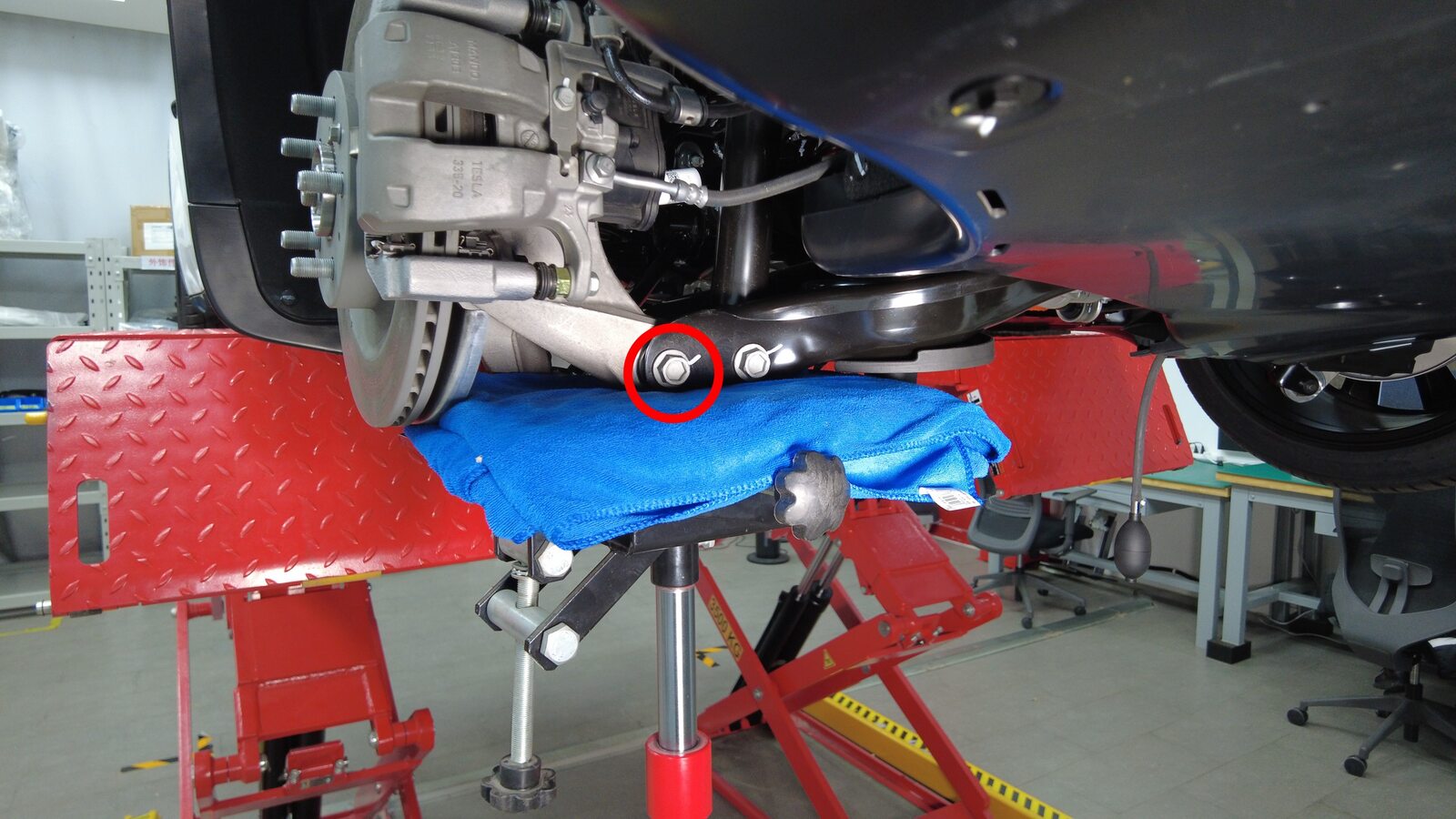 that attach the LH rear lower fore link to the knuckle, and then mark the