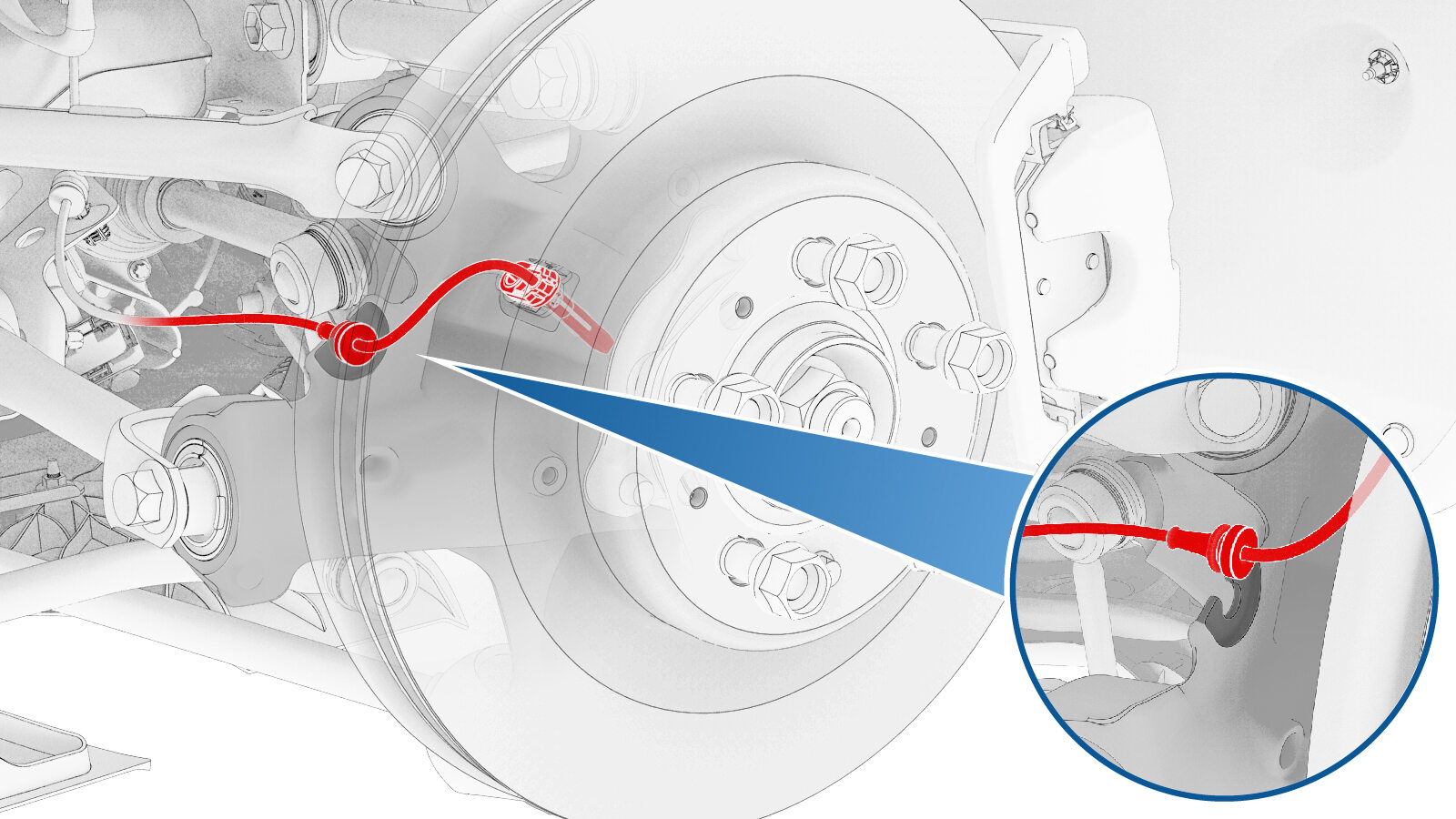 attaches the LH rear ABS wheel speed sensor cable to the knuckle.