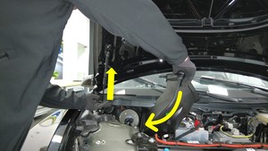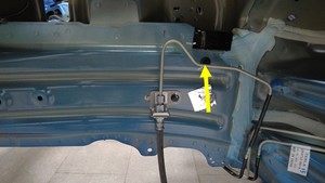 secures the washer hose, and then remove the washer hose from the LH frame