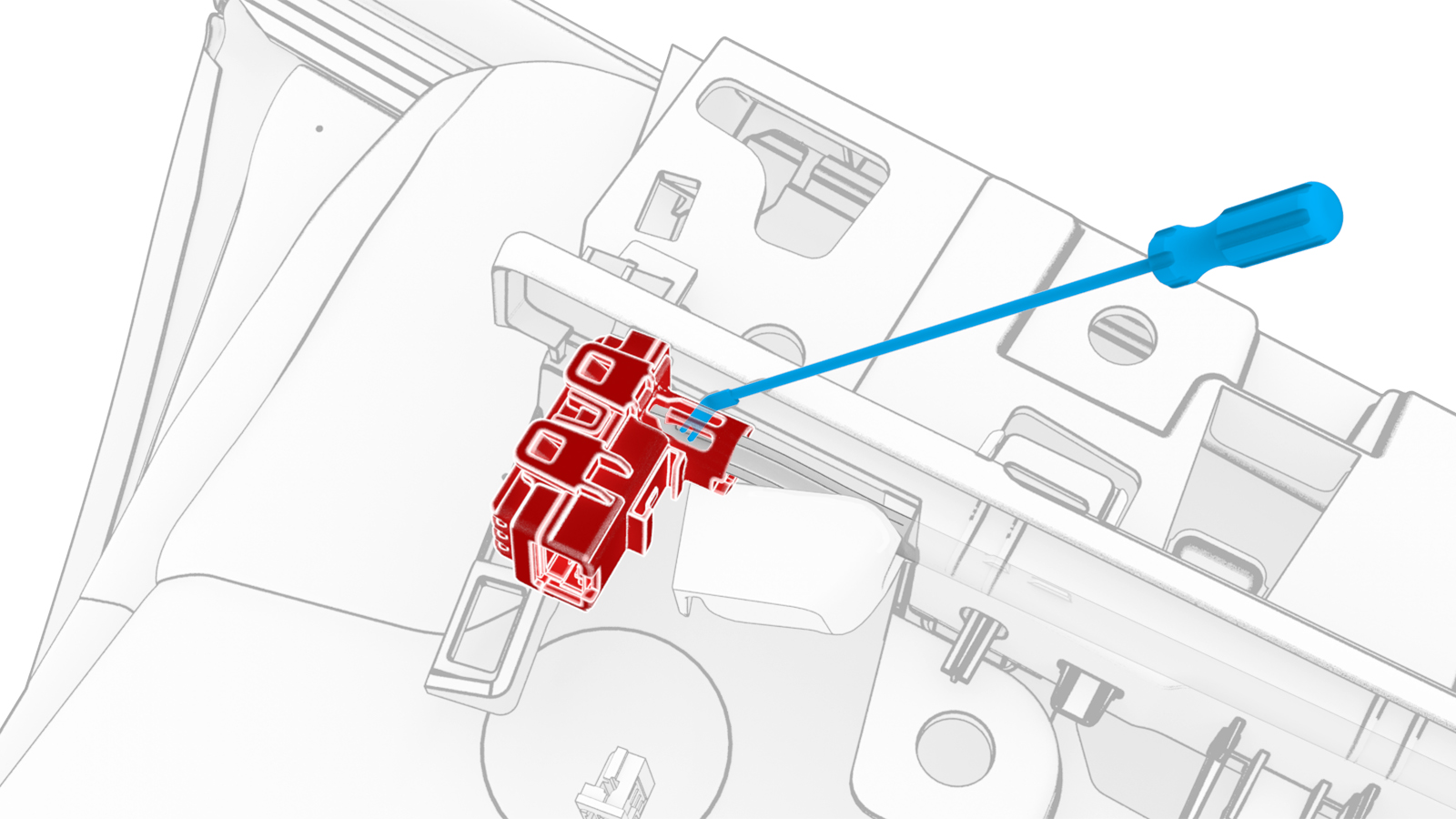 release the tabs (x2) and locator pin that attach the LH front door ambient