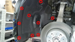 Release the clips (x9) that attach the front of the LH front wheel arch