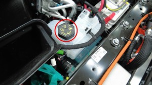 - Check the coolant bottle level and top off if necessary.