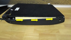 Release the clips (x2) that attach the RH 2nd row seat back latch control
