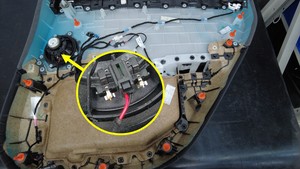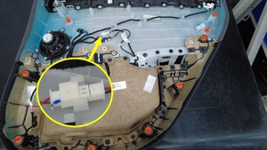 Disconnect the LH rear door atmosphere light connector from the LH rear