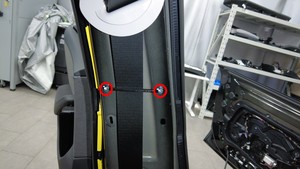 Bolts (x2) that attach the 1st row webbing guide bar to the vehicle |