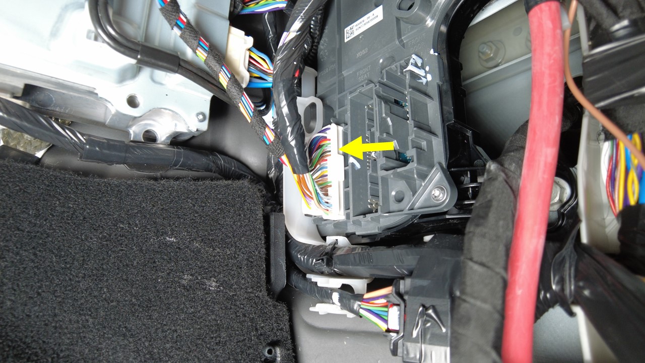Remove the wiring harness fixing clip from the lower part of the dashboard