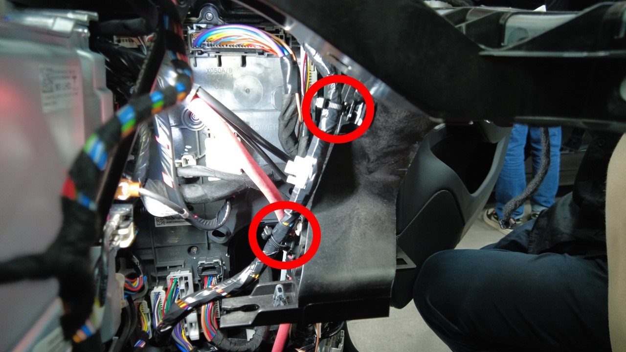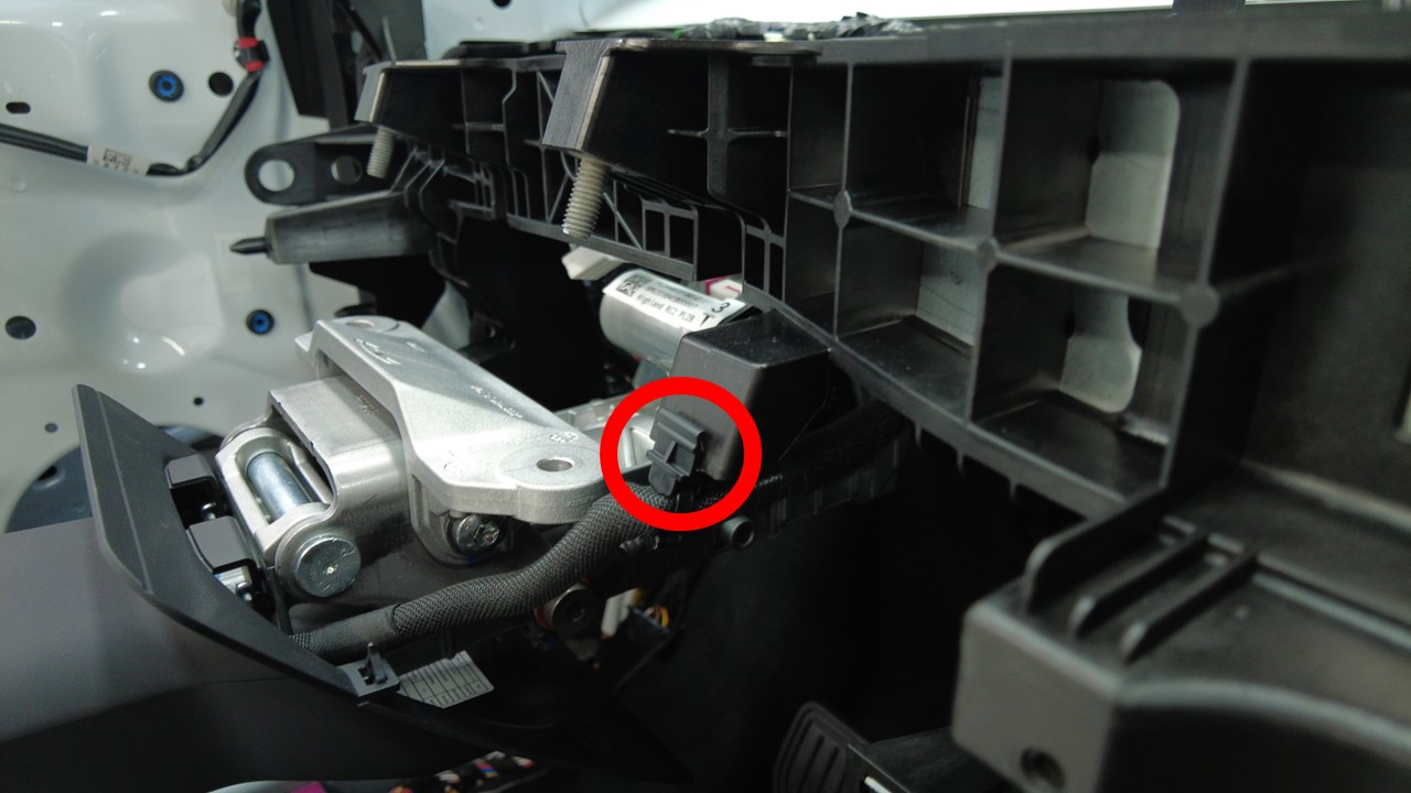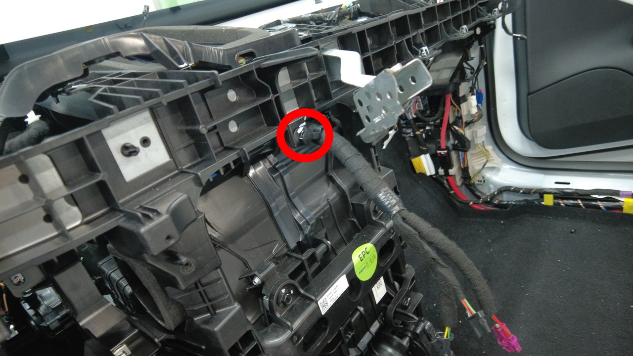 Install the wiring harness fixing clip to the lower part of the dashboard